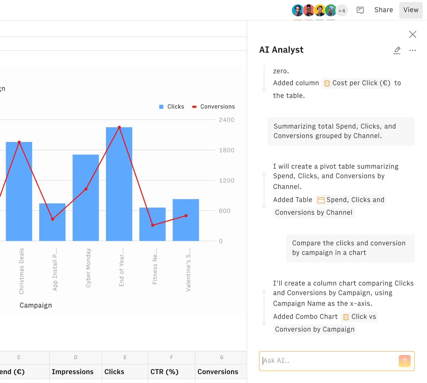 Stop wrestling with formulas and menus: tell AI what to do, and let it do the work.